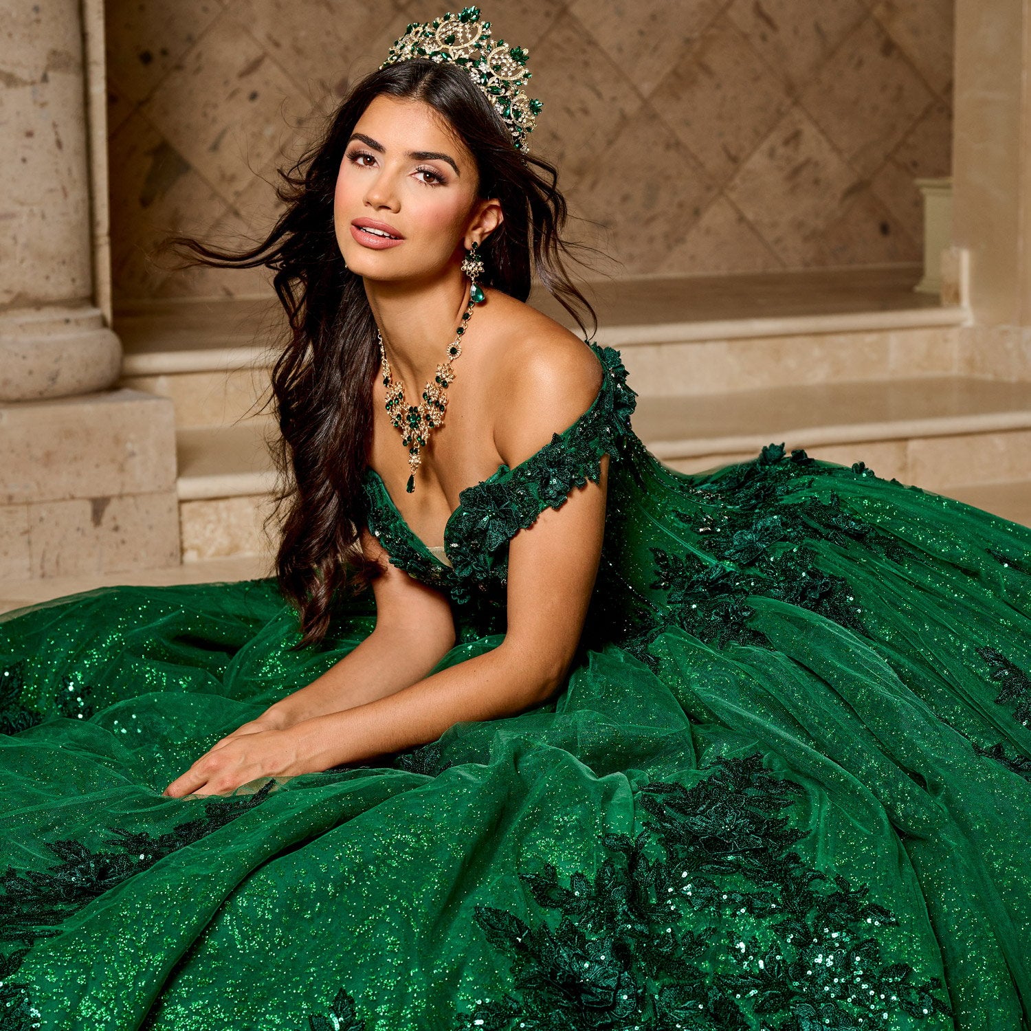 CINDERELLA DIVINE #15711 LAYERED GOLD LACE BALL GOWN